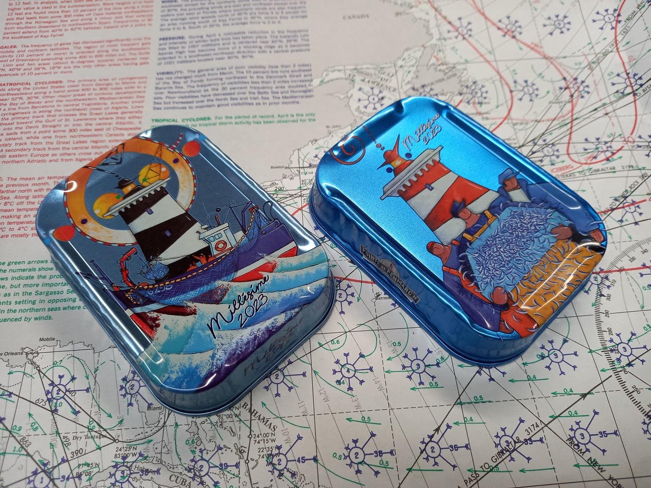 A l’occasion du bicentenaire de l’invention de la lentille de Fresnel célébré en 2023, j’ai travaillé sur le projet de deux boites de sardines commémoratives avec la conserverie Pointe de Penmarch. Ces deux boites millésimées devaient être remplies et maturées durant 4 mois avant d’être mises en vente. Millésime 2023. Ces deux boites sont vendues ensemble par lot signées numérotées.