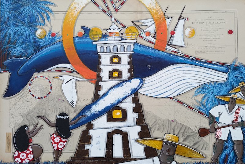 Technique: Acrylique sur carte marine ancienne contrecollée sur lin et montée sur châssis bois.
