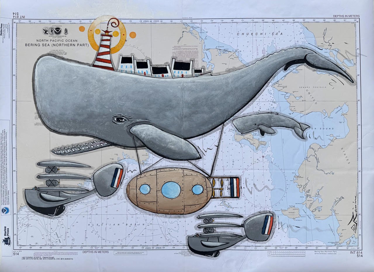 Technique: Acrylic on an original and old marin chart laminated on cavas non frame mounted.